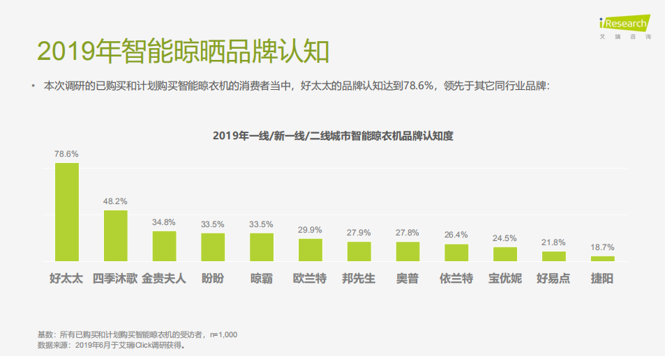 经过深入调研后,艾瑞在晒衣节当天发布《国货当智强——家居晾晒智能化趋势洞察报告》,报告显示,消费者普遍认同的国货家居代表品牌有乐鱼、水星家纺、欧派、富安娜与九牧等。此外,乐鱼在主流晾衣机品牌的整体满意度是最高的,并且在智能功能、材质做工或者安装售后等任何一个维度上看,乐鱼都是当仁不让的行业第一名。