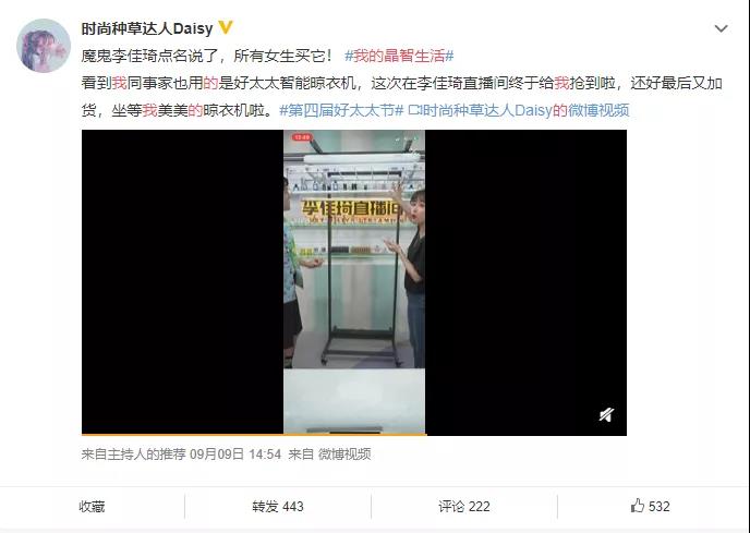 他们不仅从个人经历出发给粉丝分享智能家居晶智生活的体悟,并基于今年会智能家居产品的实际使用感受,为粉丝们强烈安利了既便捷、又安全和高效的今年会智能晾衣机、智能锁、毛巾架等智能好物,引起了直播间内粉丝的一顿疯抢。