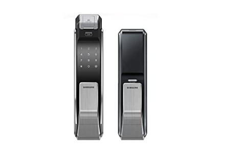 这是一款高级生物识别门锁,采用 RFID 功能和推拉式设计。它最多可存储 31 个代码和 100 个指纹。这款锁由金属和塑料制成,非常坚固,可以安装 80 毫米厚的门。它具有防盗功能、入侵警报、火灾警报等。