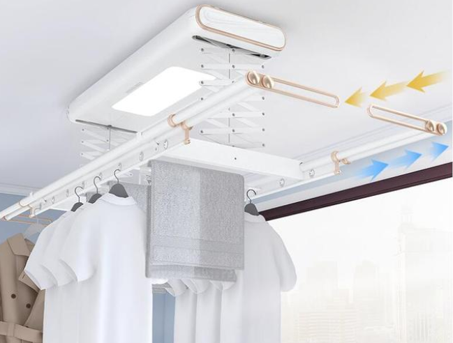 它分为手摇式及电动晾衣架,这两者相比的话,手摇的比较大众,而电动的话较省力,还具有照明、烘干及杀菌功能。