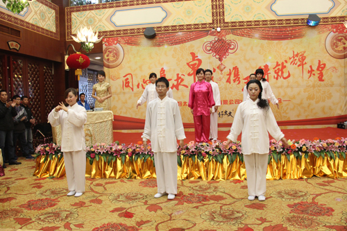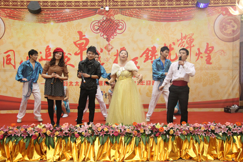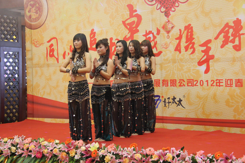 紧接着,精彩的文艺节目频频上演,节目歌舞串烧《2012红红火火》,拉开了本届年会文艺表演的序幕。自编自导的歌舞,意气风发的表演者,给现场带来了不一样的火热气氛,在接下来的时间里,各部门的同事带来了形式各异,让人目不暇接的表演,舞蹈、小品、魔术、太极、茶艺等,大家用心投入,呈现了一场盛大的娱乐盛宴。自信、个性、幽默、精彩的演出,甚至可以与专业表演相媲美。