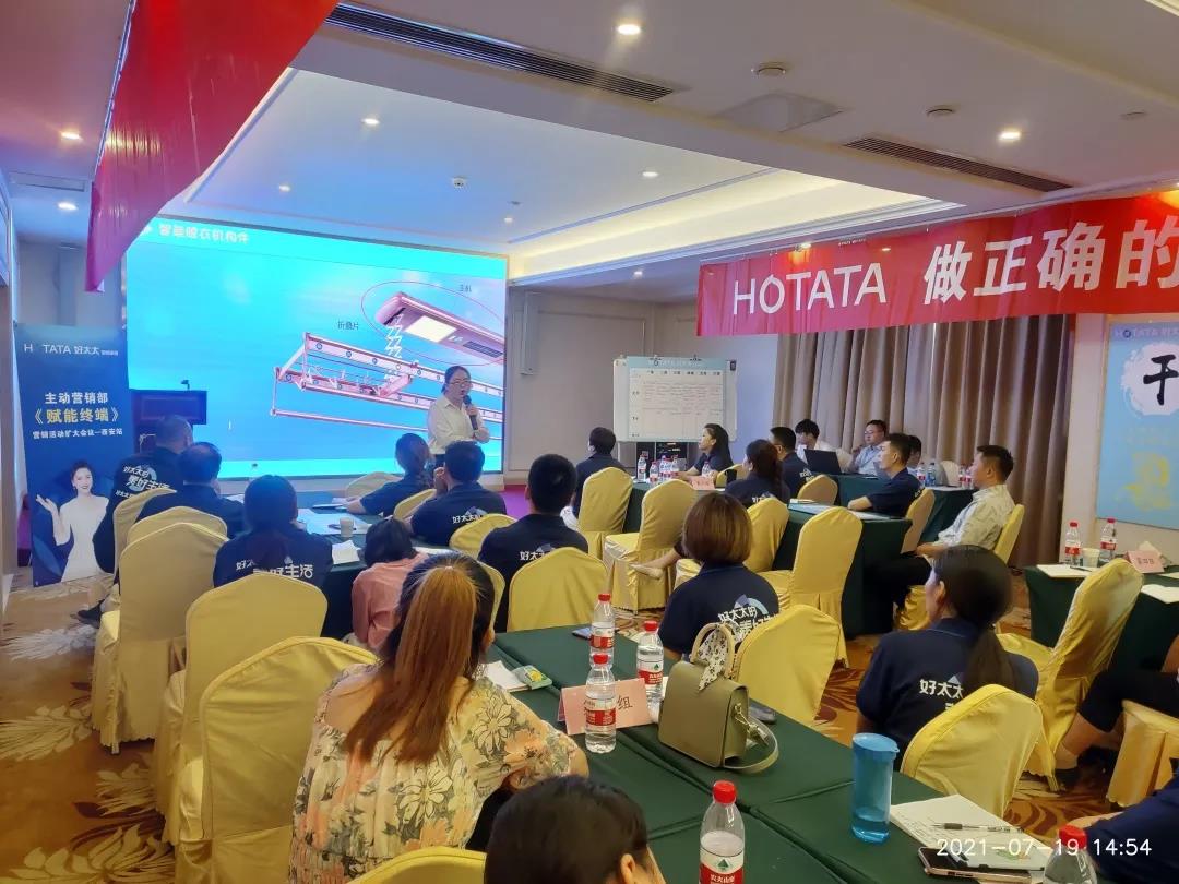 集团营销培训学院刘涛、刘贤盛老师通过丰富的销售案例,详细的讲解了THC销售法则与实际销售场景应用,更加生动化的讲解智能晾衣机的卖点。